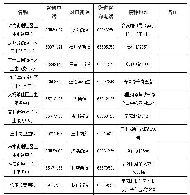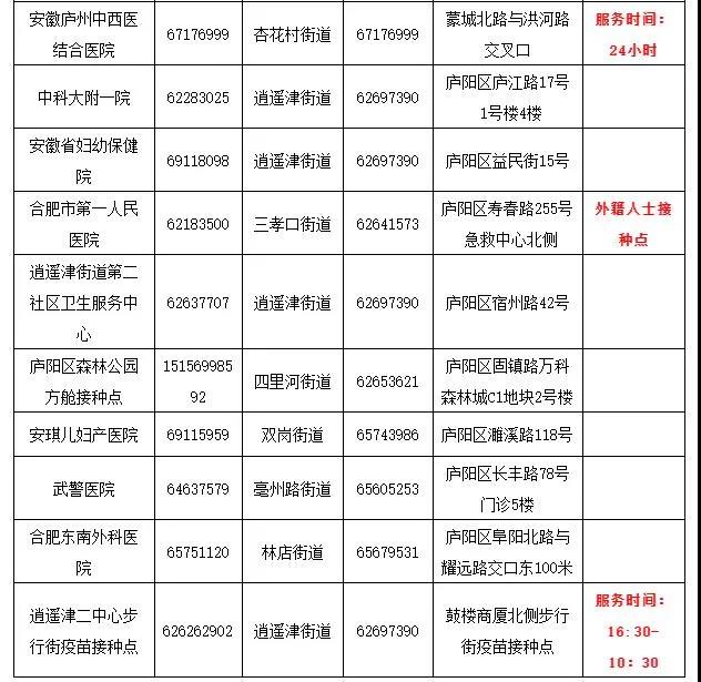 廬陽區(qū)接種單位一覽: